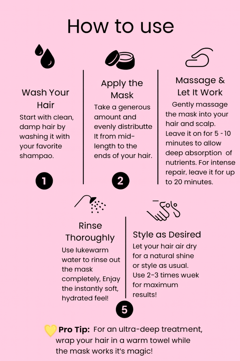 💛 Pro Tip: For an ultra-deep treatment, wrap your hair in a warm towel while the mask works its magic!